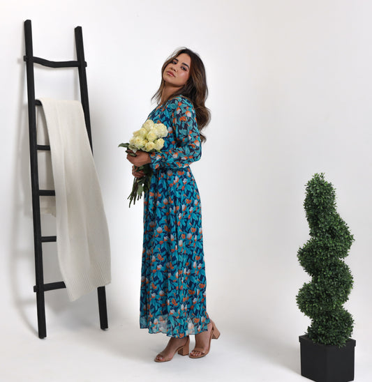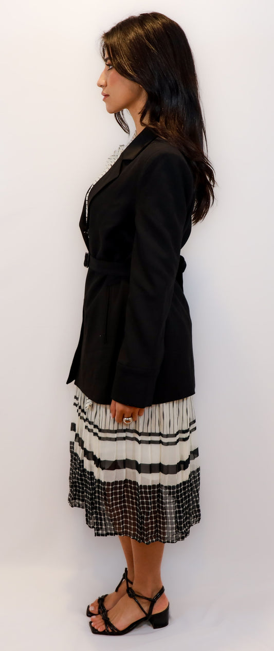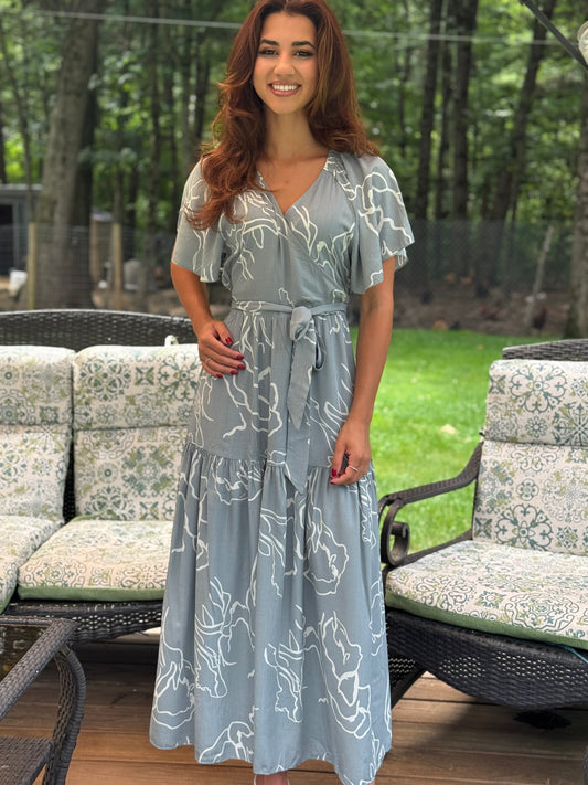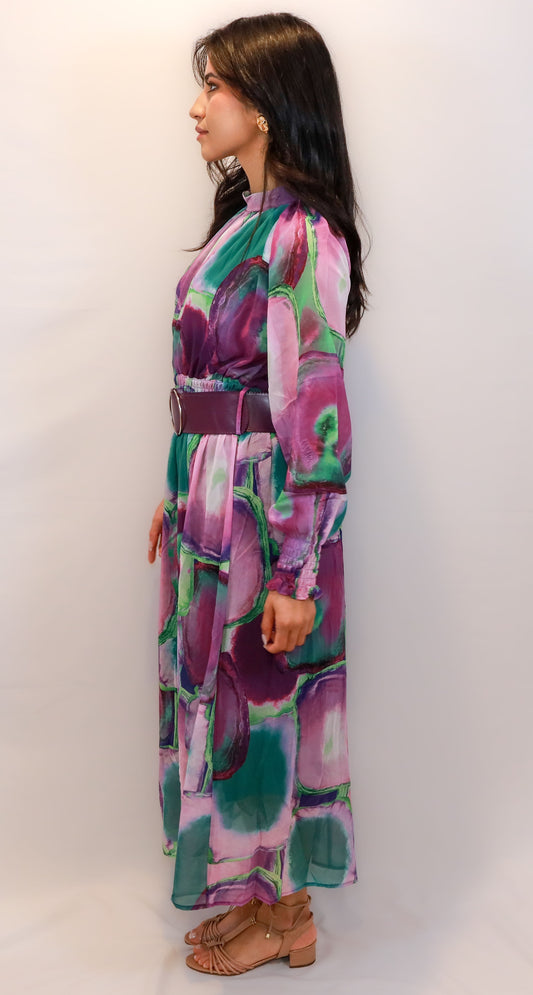 Allover Print V Neck Fit Belt A Line(Available in Black and Lt Green)