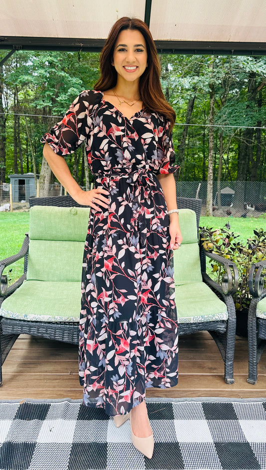 3/4 Surplus Side Tie Ruffle Hem Maxi - Black