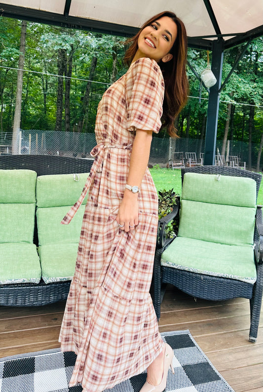 3/4 Surplus Side Tie Ruffle Hem Maxi Dress - Mocha