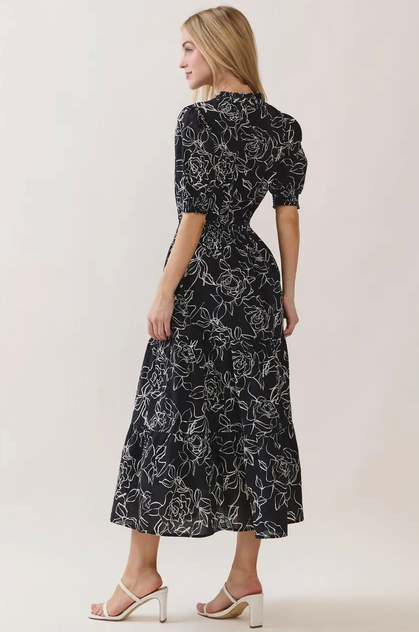 Ruffle Detailed Midi Tiered Dress - Black/Ivory
