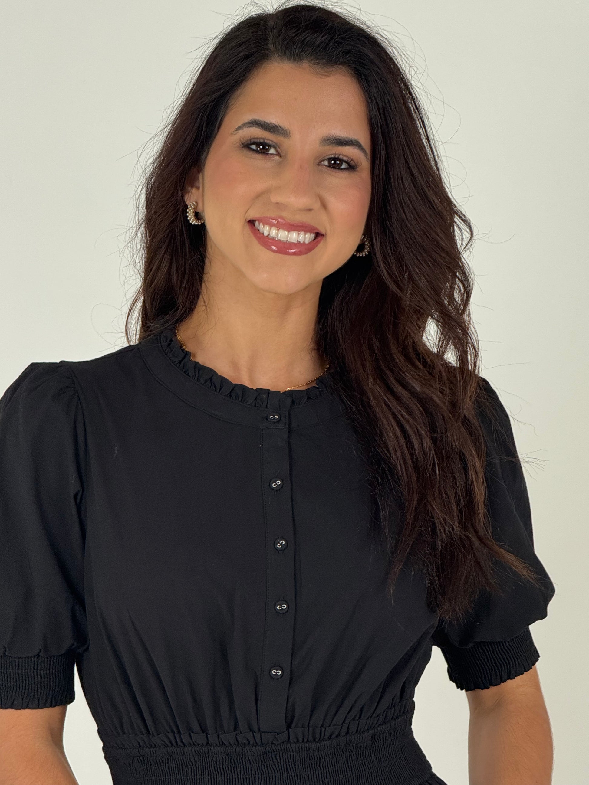 Short Sleeve Waist Smocking Tiered Dress - Black