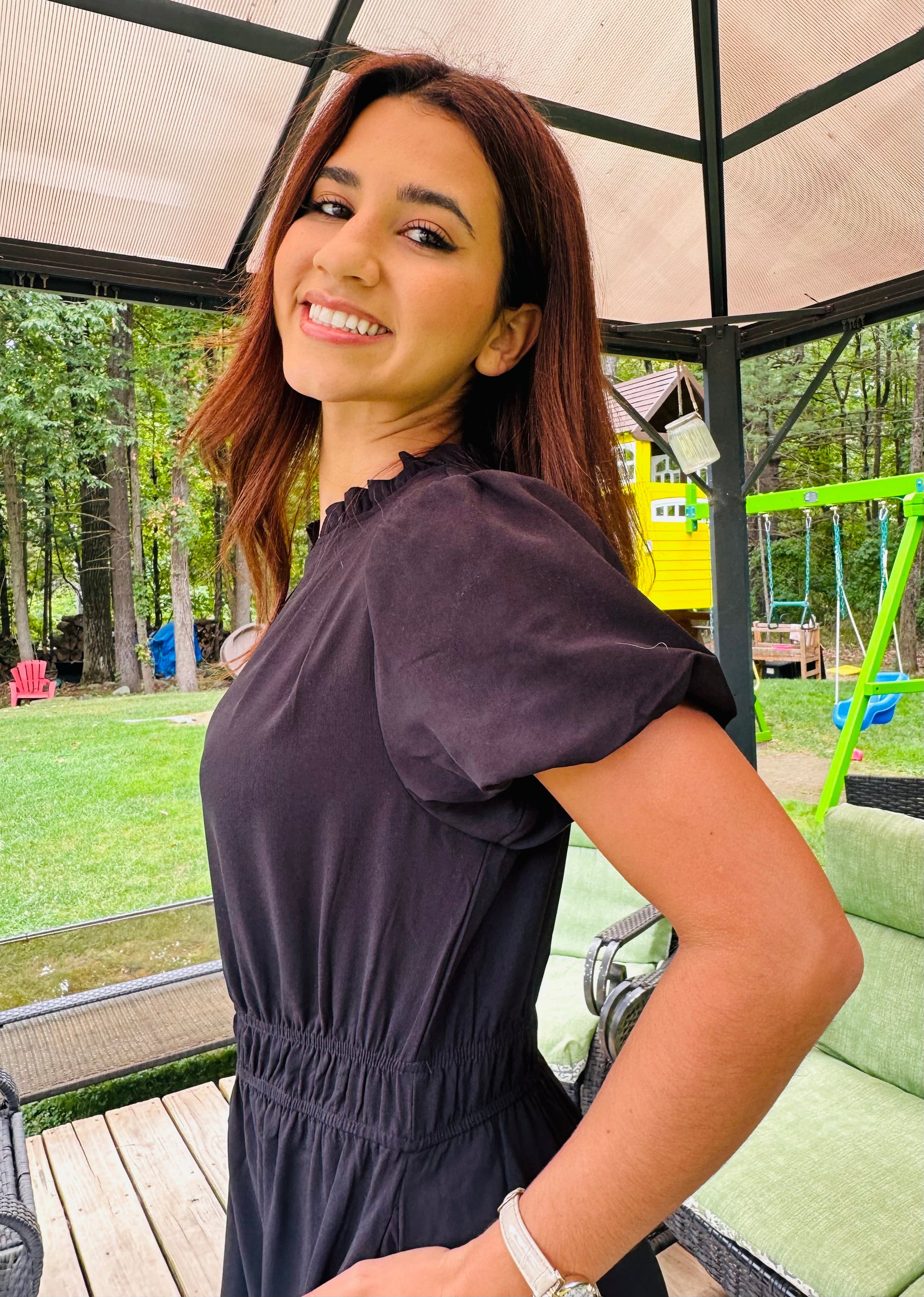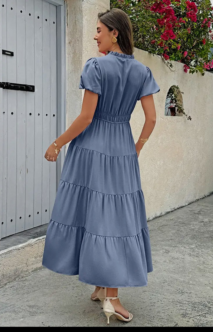 Soft, feminine, and effortlessly elegant, this dress is a perfect choice for modest everyday style. Made from 100% lightweight polyester, it features a flattering yet modest V-neckline, gentle color block detailing, and an elastic waist for a comfortable, flattering fit. The design offers full coverage with a graceful drape, making it suitable for a variety of occasions—from casual outings and school to vacations and relaxed gatherings.
