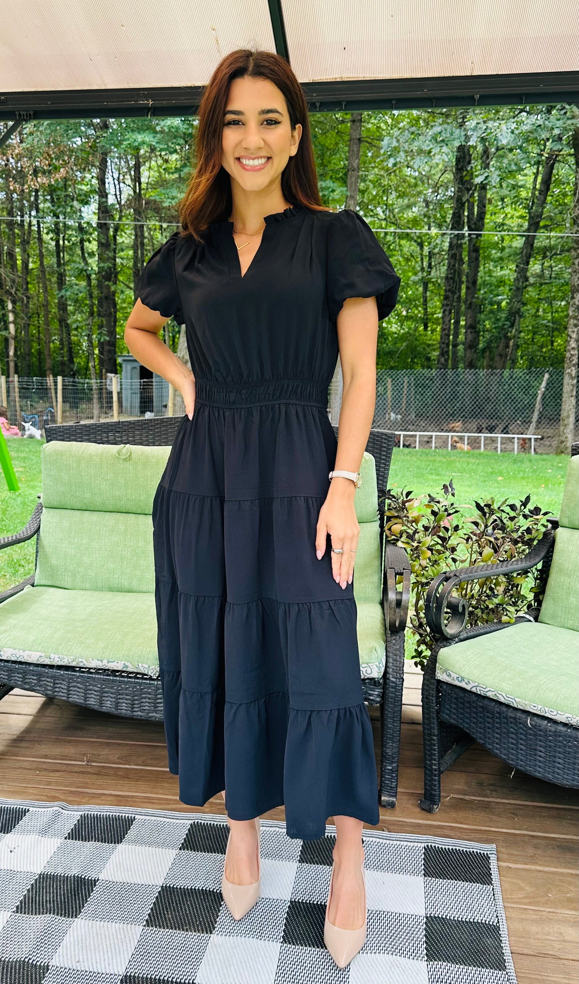 Solid V Neck Color Block Elastic Waist Dress (Copy)